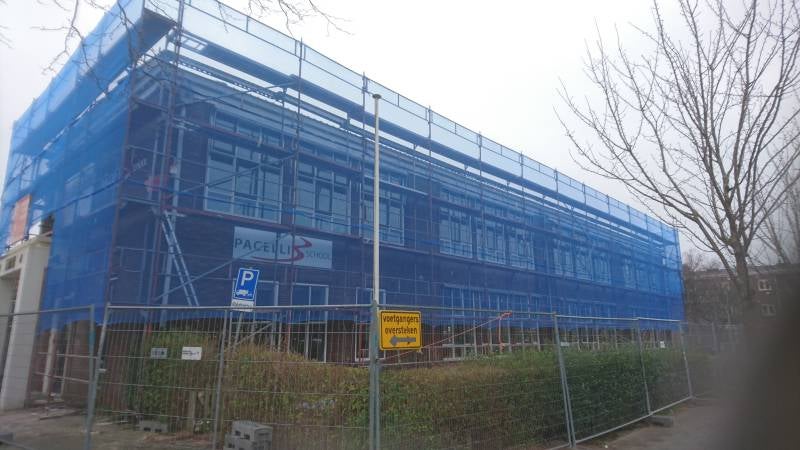 Leiden - Blitz steiger voor renovatie school